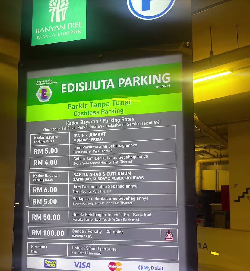 Banyan Tree’s Parking Rate Notice Share Copy URLWhatsAppFacebookTwitterLinkedinEmail Last Updated on December 16, 2025 by Parking Malaysia © parkinginmalaysia.com Back Share Copy URLWhatsAppFacebookTwitterLinkedinEmail Subscribe Notify of new follow-up comments new replies to my comments Label {} [+] Name* Email* Label {} [+] Name* Email* 0 Comments Oldest Newest Most Voted Inline Feedbacks View all comments Info Difference Between “Reserved” and “Non-Reserved” Monthly Pass Parking in Malaysia How much TnG balance is required for parking in Malaysia Can you use MyKad’s TnG for parking payments? Can You Use Your Bankcard To Exit Parking If Your T&G Card Has Insufficient Balance?