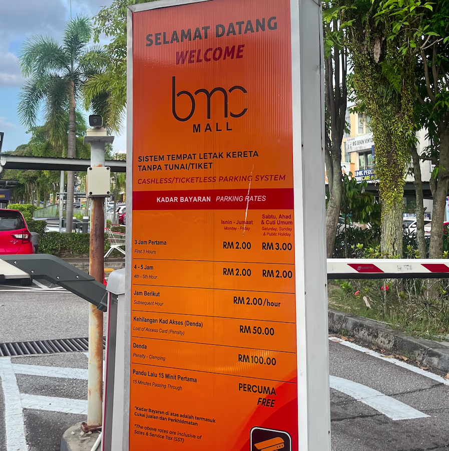 BMC Mall’s Parking Rate Board Share Copy URLWhatsAppFacebookTwitterLinkedinEmail Last Updated on July 20, 2025 by Parking Malaysia © parkinginmalaysia.com Back Share Copy URLWhatsAppFacebookTwitterLinkedinEmail Subscribe Notify of new follow-up comments new replies to my comments Label {} [+] Name* Email* Label {} [+] Name* Email* 0 Comments Oldest Newest Most Voted Inline Feedbacks View all comments Info Difference Between “Reserved” and “Non-Reserved” Monthly Pass Parking in Malaysia How much TnG balance is required for parking in Malaysia Can you use MyKad’s TnG for parking payments? Can You Use Your Bankcard To Exit Parking If Your T&G Card Has Insufficient Balance?