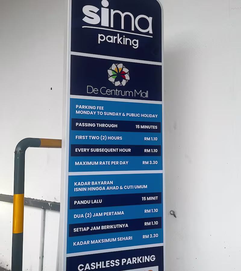 De Centrum Mall’s Parking Rate Notice Share Copy URLWhatsAppFacebookTwitterLinkedinEmail Basement & Multi-Level © parkinginmalaysia.com More Info Share Copy URLWhatsAppFacebookTwitterLinkedinEmail Subscribe Notify of new follow-up comments new replies to my comments Label {} [+] Name* Email* Label {} [+] Name* Email* 0 Comments Oldest Newest Most Voted Inline Feedbacks View all comments Info Difference Between “Reserved” and “Non-Reserved” Monthly Pass Parking in Malaysia How much TnG balance is required for parking in Malaysia Can you use MyKad’s TnG for parking payments? Can You Use Your Bankcard To Exit Parking If Your T&G Card Has Insufficient Balance?