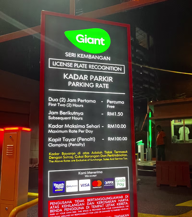 Giant Seri Kembangan’s Parking Rate Notice