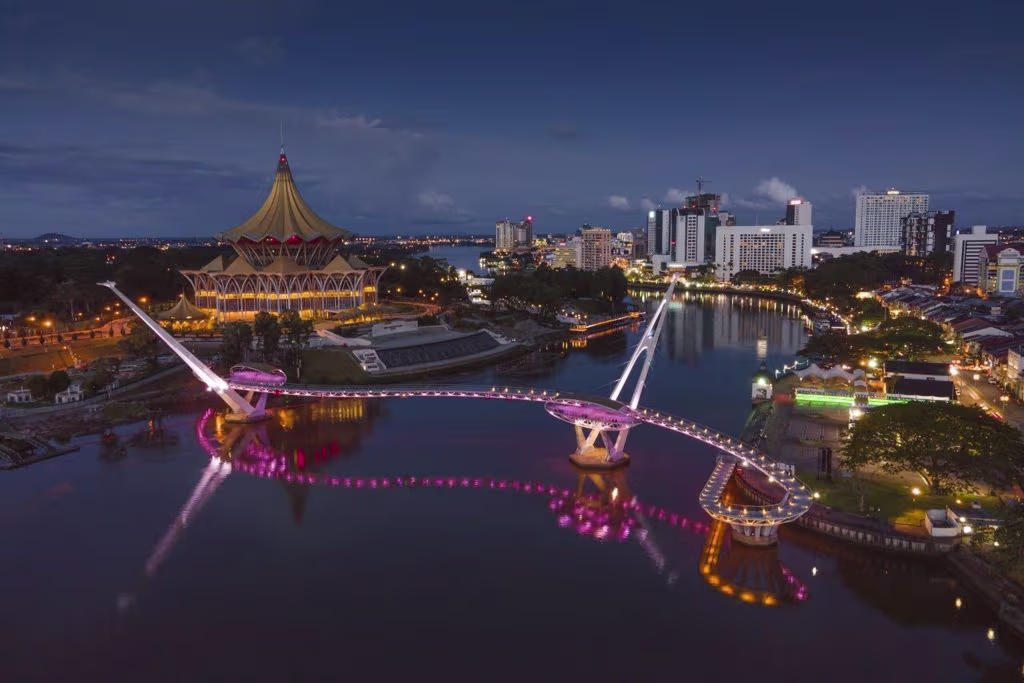The Darul Hana Bridge is an iconic pedestrian bridge in Kuching, Sarawak, spanning the Sarawak River. Opened in 2017, it serves as a prominent landmark connecting the Kuching Waterfront on the south bank with the north bank, where the Astana and the Sarawak State Legislative Assembly building are located.