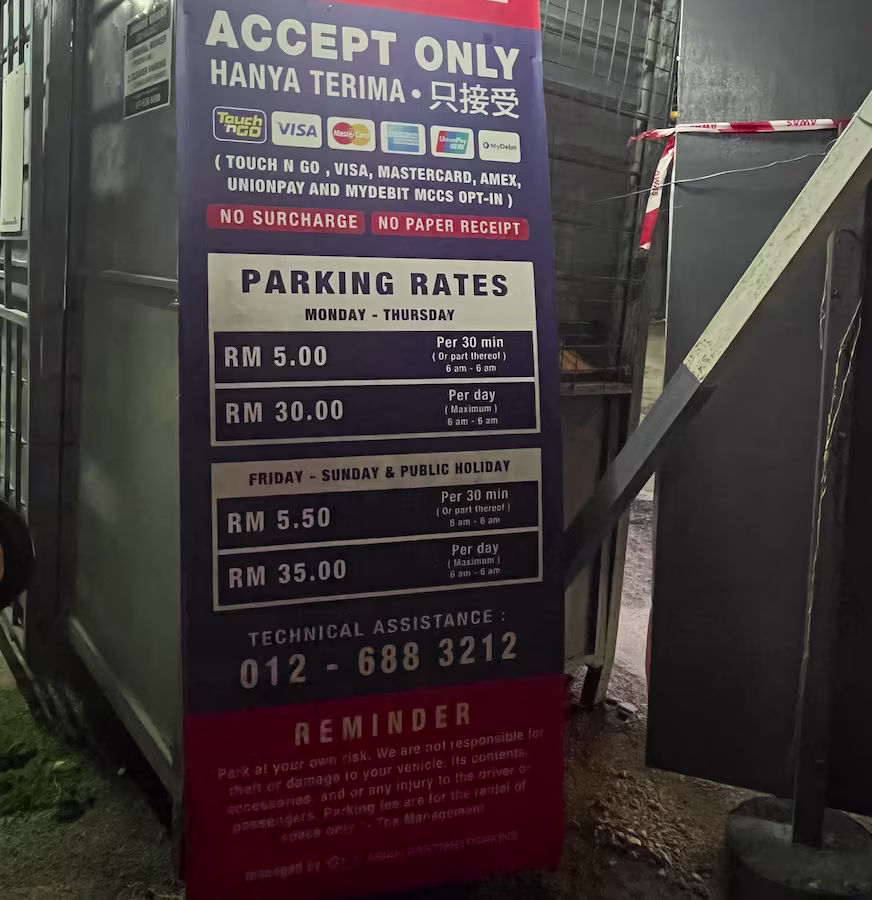 Jalan Petaling’s Outdoor Parking Rate Notice Share Copy URLWhatsAppFacebookTwitterLinkedinEmail Last Updated on September 13, 2025 by Parking Malaysia © parkinginmalaysia.com Back Share Copy URLWhatsAppFacebookTwitterLinkedinEmail Subscribe Notify of new follow-up comments new replies to my comments Label {} [+] Name* Email* Label {} [+] Name* Email* 0 Comments Oldest Newest Most Voted Inline Feedbacks View all comments Info Difference Between “Reserved” and “Non-Reserved” Monthly Pass Parking in Malaysia How much TnG balance is required for parking in Malaysia Can you use MyKad’s TnG for parking payments? Can You Use Your Bankcard To Exit Parking If Your T&G Card Has Insufficient Balance?