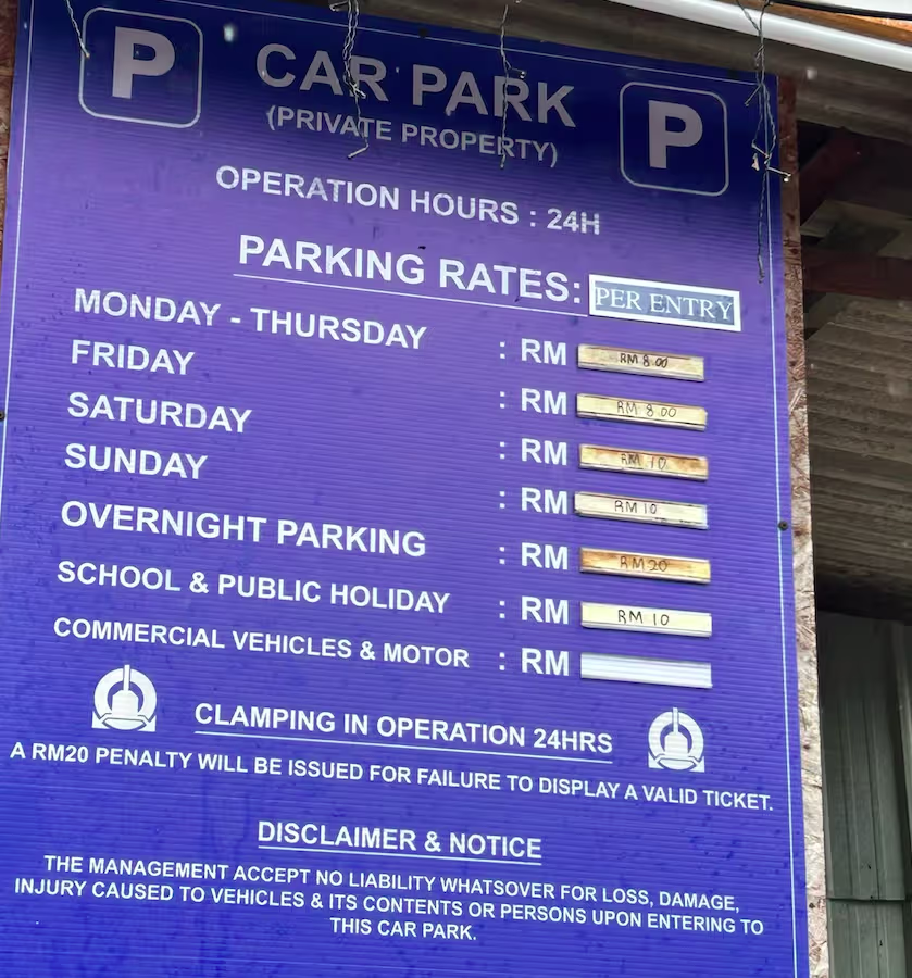 Jln Portugis’s Outdoor Parking Rate Board Share Copy URLWhatsAppFacebookTwitterLinkedinEmail Last Updated On December 31, 2025 December 31, 2025 © parkinginmalaysia.com May 31, 2025 © parkinginmalaysia.com More Info Nearby Car Parks is only available for our subscribers. More Info Share Copy URLWhatsAppFacebookTwitterLinkedinEmail Subscribe Notify of new follow-up comments new replies to my comments Label {} [+] Name* Email* Label {} [+] Name* Email* 0 Comments Oldest Newest Most Voted Inline Feedbacks View all comments Info Is 15 Minutes Grace Period Included in the First Hour of Parking? What Is Cut-Off Time in a Parking Rate Notice RM10.00 or RM20.00 Charged Instead of Normal Parking Rate? Can You Use Your Bankcard To Exit Parking If Your T&G Card Has Insufficient Balance? Can you use MyKad’s TnG for parking payments?