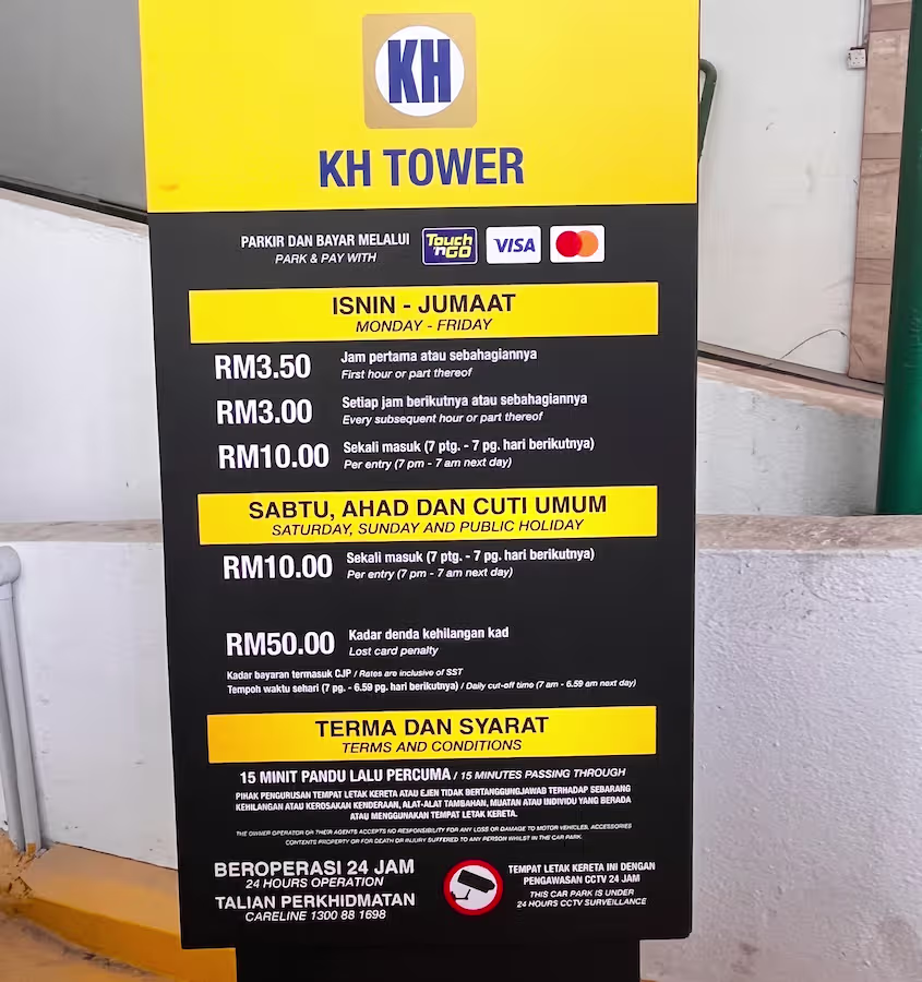 KH Tower’s Parking Rate Board