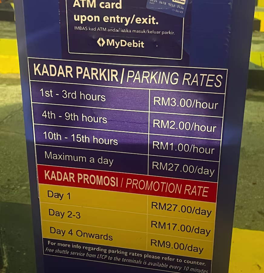 KLIA 1 LTCP’s Parking Rate Notice Share Copy URLWhatsAppFacebookTwitterLinkedinEmail Last Updated on September 13, 2025 by Parking Malaysia © parkinginmalaysia.com Back Share Copy URLWhatsAppFacebookTwitterLinkedinEmail Subscribe Notify of new follow-up comments new replies to my comments Label {} [+] Name* Email* Label {} [+] Name* Email* 0 Comments Oldest Newest Most Voted Inline Feedbacks View all comments Info Difference Between “Reserved” and “Non-Reserved” Monthly Pass Parking in Malaysia How much TnG balance is required for parking in Malaysia Can you use MyKad’s TnG for parking payments? Can You Use Your Bankcard To Exit Parking If Your T&G Card Has Insufficient Balance?