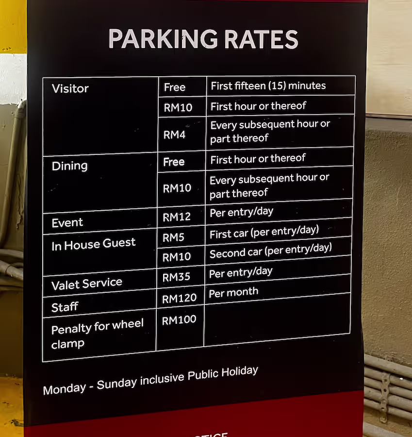 Marriot Petaling Jaya’s Parking Rate Notice Share Copy URLWhatsAppFacebookTwitterLinkedinEmail More Info Share Copy URLWhatsAppFacebookTwitterLinkedinEmail Subscribe Notify of new follow-up comments new replies to my comments Label {} [+] Name* Email* Label {} [+] Name* Email* 0 Comments Oldest Newest Most Voted Inline Feedbacks View all comments Info Difference Between “Reserved” and “Non-Reserved” Monthly Pass Parking in Malaysia How much TnG balance is required for parking in Malaysia Can you use MyKad’s TnG for parking payments? Can You Use Your Bankcard To Exit Parking If Your T&G Card Has Insufficient Balance?