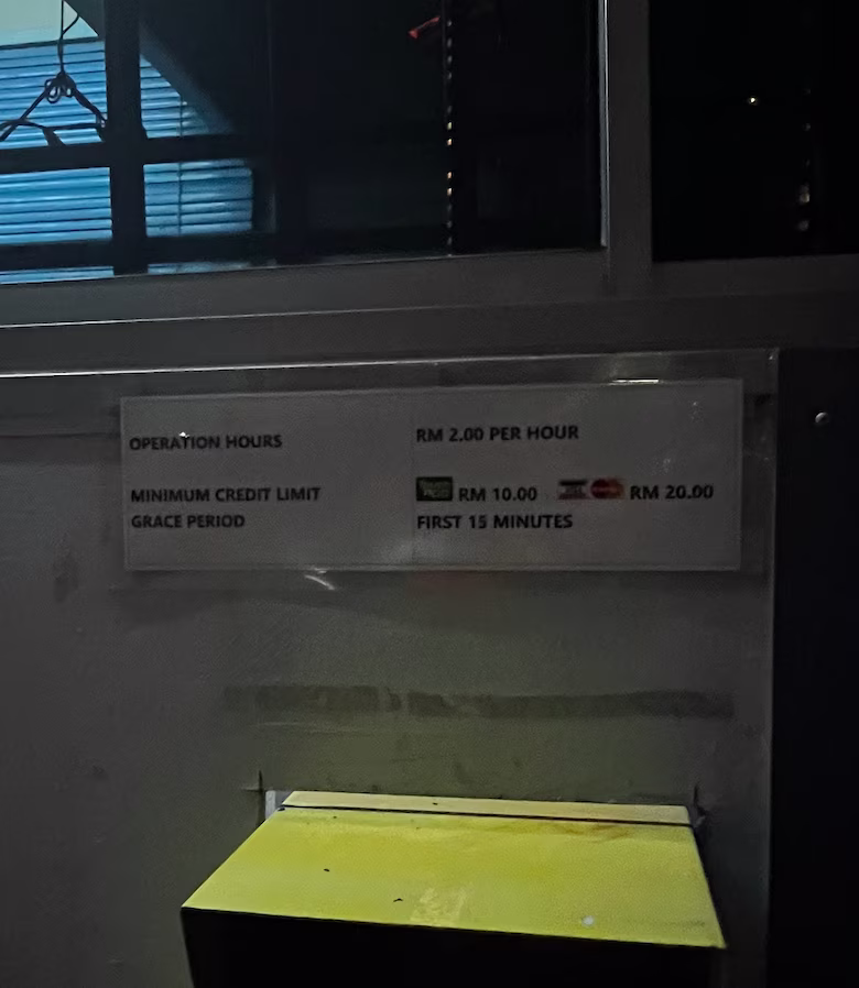 Menara MSC Cyberport’s Parking Rate Notice Share Copy URLWhatsAppFacebookTwitterLinkedinEmail © parkinginmalaysia.com More Info Share Copy URLWhatsAppFacebookTwitterLinkedinEmail Subscribe Notify of new follow-up comments new replies to my comments Label {} [+] Name* Email* Label {} [+] Name* Email* 0 Comments Oldest Newest Most Voted Inline Feedbacks View all comments Info Difference Between “Reserved” and “Non-Reserved” Monthly Pass Parking in Malaysia How much TnG balance is required for parking in Malaysia Can you use MyKad’s TnG for parking payments? Can You Use Your Bankcard To Exit Parking If Your T&G Card Has Insufficient Balance?