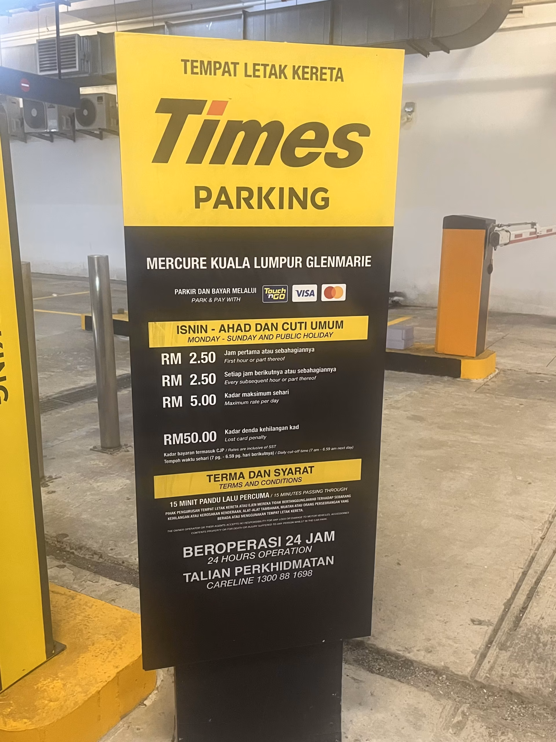 Mercure Kuala Lumpur Glenmarie’s Parking Rate Notice