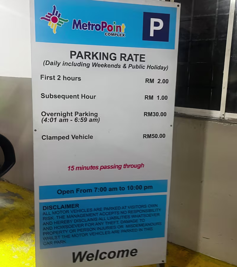 MetroPoint Complex’s Parking Rate Notice