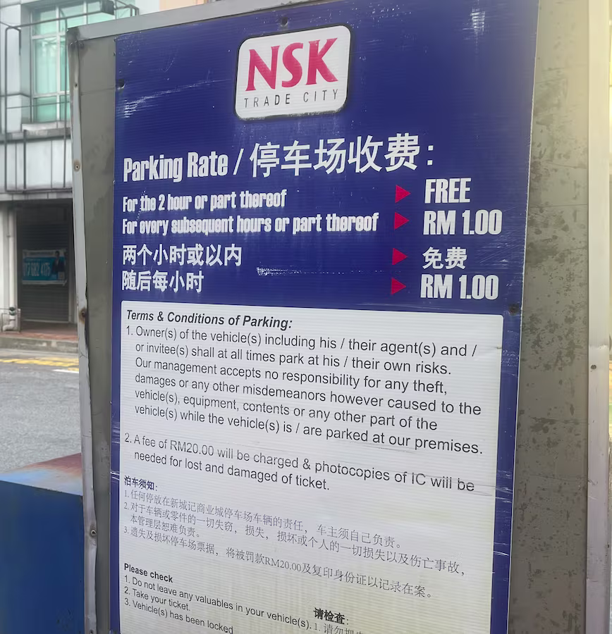 NSK Trade City’s Parking Rate Board (Kuchai Lama)