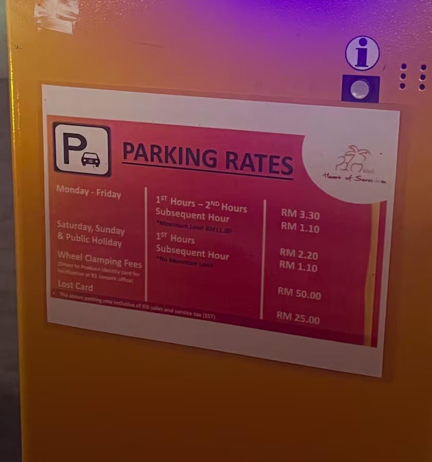 Palm Mall’s Parking Rate Notice Share Copy URLWhatsAppFacebookTwitterLinkedinEmail Last Updated on November 3, 2025 by Parking Malaysia © parkinginmalaysia.com Back Share Copy URLWhatsAppFacebookTwitterLinkedinEmail Subscribe Notify of new follow-up comments new replies to my comments Label {} [+] Name* Email* Label {} [+] Name* Email* 0 Comments Oldest Newest Most Voted Inline Feedbacks View all comments Info Difference Between “Reserved” and “Non-Reserved” Monthly Pass Parking in Malaysia How much TnG balance is required for parking in Malaysia Can you use MyKad’s TnG for parking payments? Can You Use Your Bankcard To Exit Parking If Your T&G Card Has Insufficient Balance?