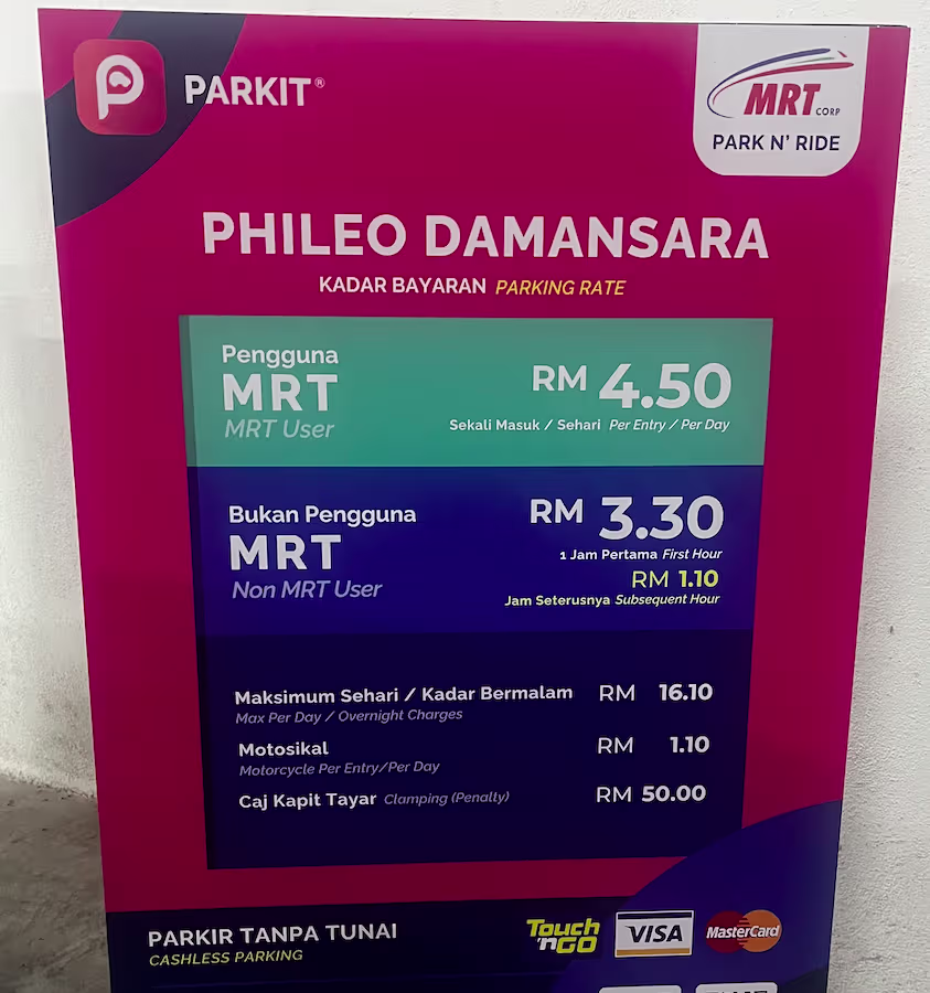 Park N’ Ride MRT Phileo Damansara’s Parking Rate Notice