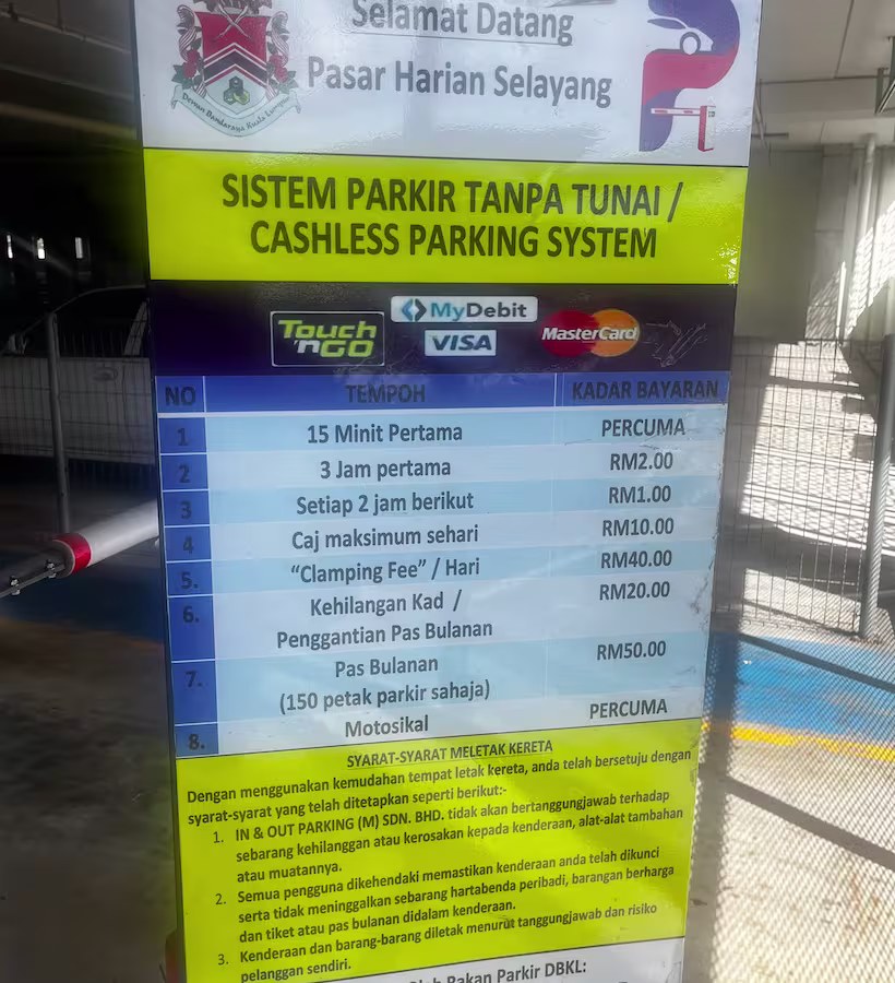 Pasar Harian Selayang’s Parking Rate Notice Share Copy URLWhatsAppFacebookXLinkedinEmail Last Updated On February 20, 2026 More Info Upload New Name *Email Address *Upload File(s) *Drag and Drop (or) Choose FilesSubmit Share Copy URLWhatsAppFacebookXLinkedinEmail Nearby car parks is only for subscribers. More info here Subscribe Notify of new follow-up comments new replies to my comments Label {} [+] Name* Email* Label {} [+] Name* Email* 0 Comments Oldest Newest Most Voted Inline Feedbacks View all comments Info Is 15 Minutes Grace Period Included in the First Hour of Parking? What Is Cut-Off Time in a Parking Rate Notice RM10.00 or RM20.00 Charged Instead of Normal Parking Rate? Can You Use Your Bankcard To Exit Parking If Your T&G Card Has Insufficient Balance? Can you use MyKad’s TnG for parking payments?