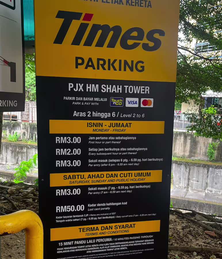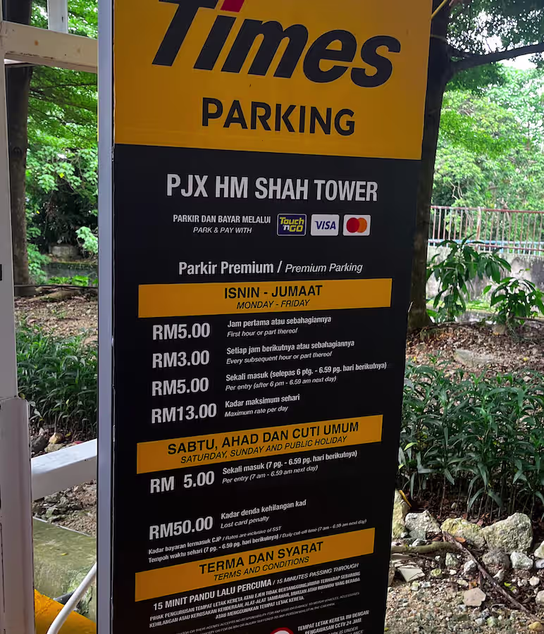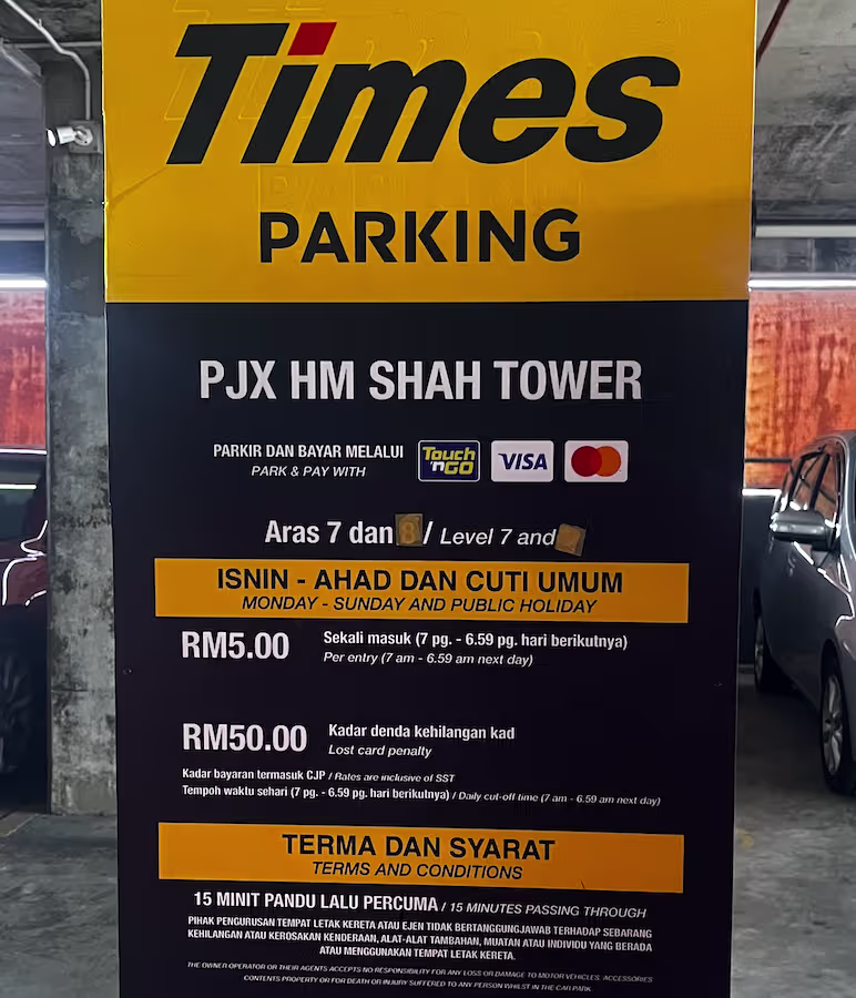 PJX HM Shah Tower’s Parking Rate Notice Share Copy URLWhatsAppFacebookTwitterLinkedinEmail Outdoor | Premium © parkinginmalaysia.com Multi-Level | Level 2 – Level 6 © parkinginmalaysia.com Multi-Level | Level 7 © parkinginmalaysia.com More Info Share Copy URLWhatsAppFacebookTwitterLinkedinEmail Subscribe Notify of new follow-up comments new replies to my comments Label {} [+] Name* Email* Label {} [+] Name* Email* 0 Comments Oldest Newest Most Voted Inline Feedbacks View all comments Info Difference Between “Reserved” and “Non-Reserved” Monthly Pass Parking in Malaysia How much TnG balance is required for parking in Malaysia Can you use MyKad’s TnG for parking payments? Can You Use Your Bankcard To Exit Parking If Your T&G Card Has Insufficient Balance?