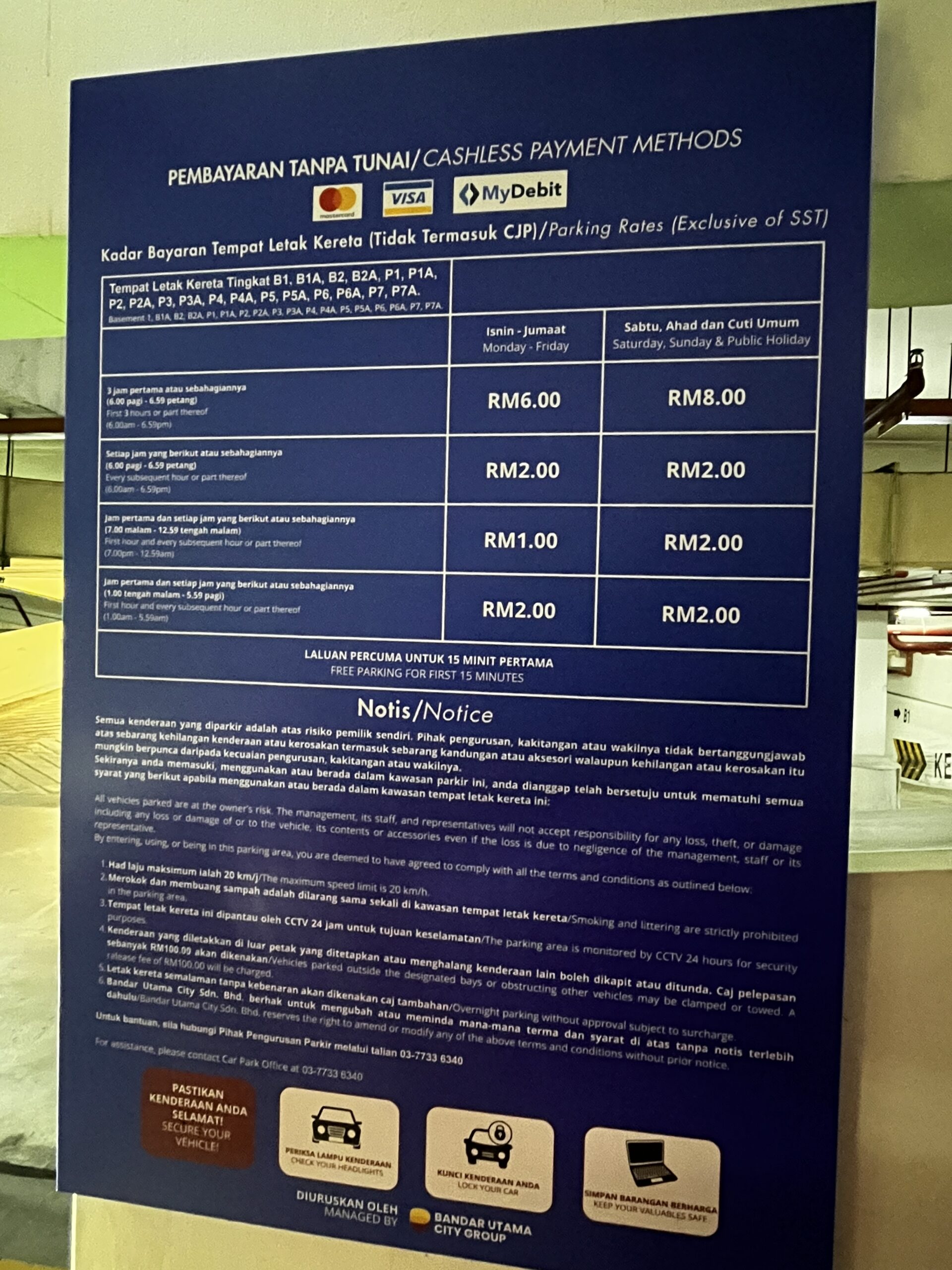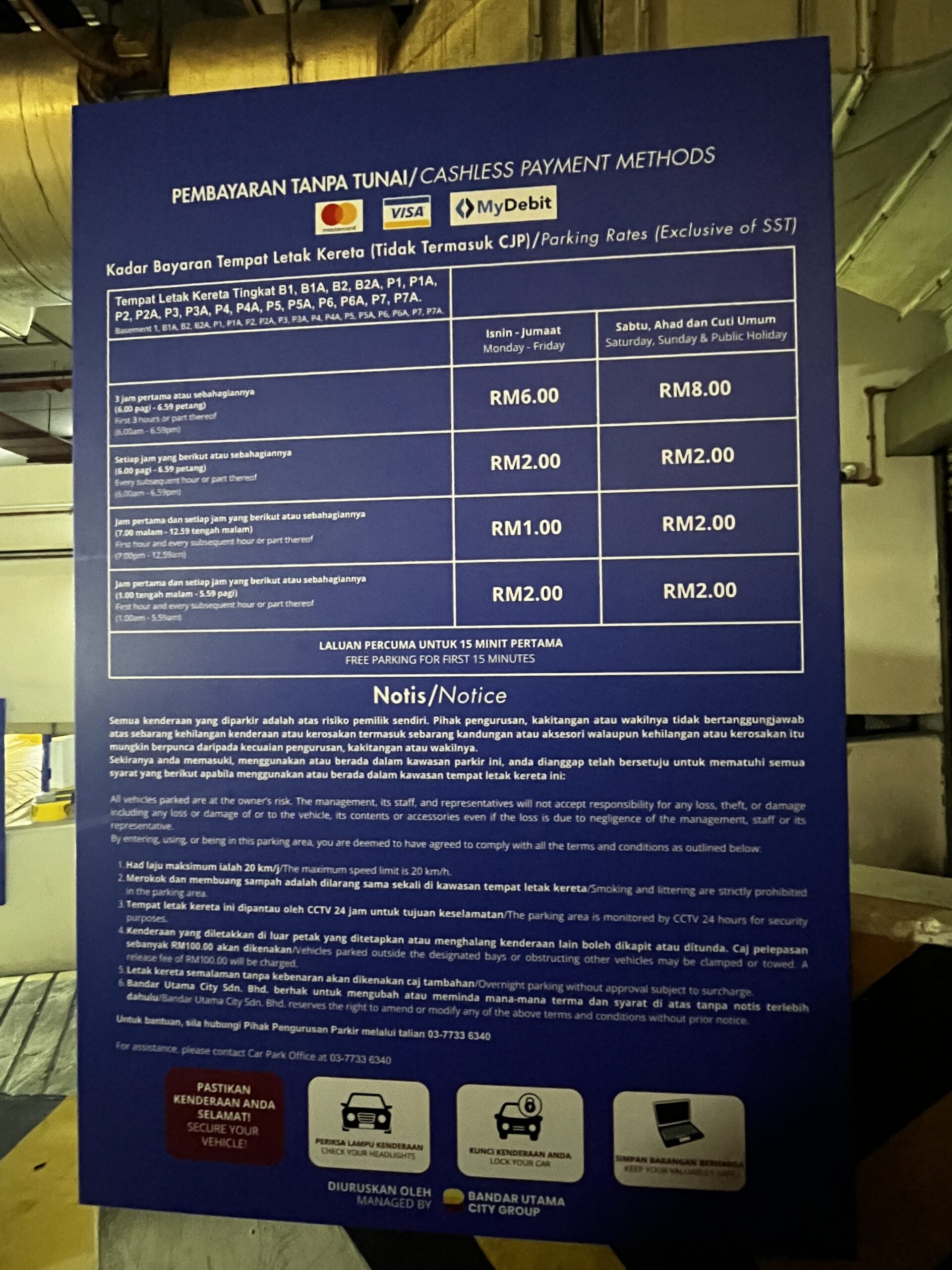 Plaza First Nationwide’s Parking Rate Notice Share Copy URLWhatsAppFacebookTwitterLinkedinEmail Last Updated on November 16, 2025 by Parking Malaysia Basement © parkinginmalaysia.com Multi-Level © parkinginmalaysia.com Back Share Copy URLWhatsAppFacebookTwitterLinkedinEmail Subscribe Notify of new follow-up comments new replies to my comments Label {} [+] Name* Email* Label {} [+] Name* Email* 0 Comments Oldest Newest Most Voted Inline Feedbacks View all comments Info Difference Between “Reserved” and “Non-Reserved” Monthly Pass Parking in Malaysia How much TnG balance is required for parking in Malaysia Can you use MyKad’s TnG for parking payments? Can You Use Your Bankcard To Exit Parking If Your T&G Card Has Insufficient Balance?