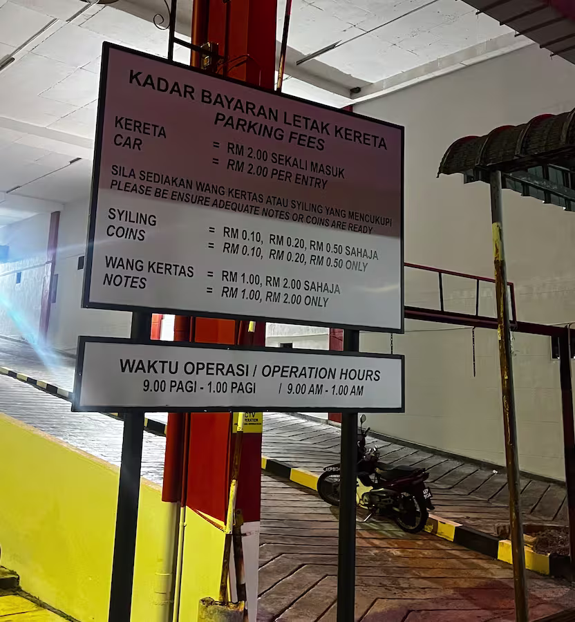 Plaza Perbandaran Taiping’s Parking Rate Notice Share Copy URLWhatsAppFacebookXLinkedinEmail Last Updated On March 20, 2026 More Info Upload New Name *Email Address *Upload File(s) *Drag and Drop (or) Choose FilesSubmit Share Copy URLWhatsAppFacebookXLinkedinEmail Nearby car parks is only for subscribers. More info here Subscribe Notify of new follow-up comments new replies to my comments Label {} [+] Name* Email* Label {} [+] Name* Email* 0 Comments Oldest Newest Most Voted Inline Feedbacks View all comments Info Is 15 Minutes Grace Period Included in the First Hour of Parking? What Is Cut-Off Time in a Parking Rate Notice RM10.00 or RM20.00 Charged Instead of Normal Parking Rate? Can You Use Your Bankcard To Exit Parking If Your T&G Card Has Insufficient Balance? Can you use MyKad’s TnG for parking payments?