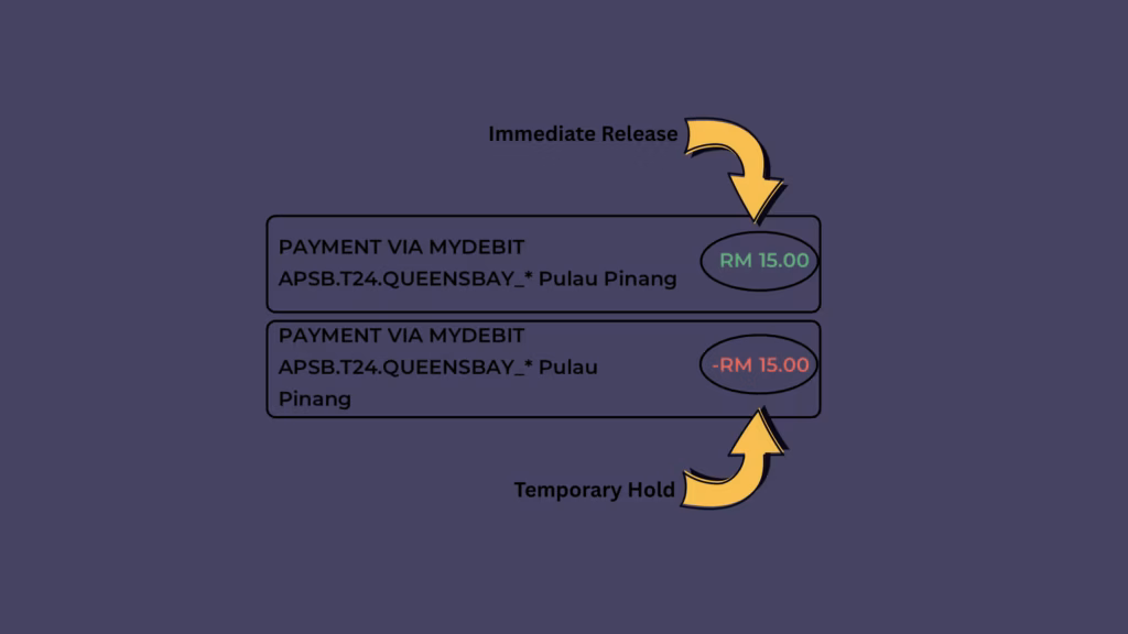 Some car parks–only some–have a pre-authorization amount or also known as a temporary hold amount as you entered the car park. This is in spite of you entering and leaving the car park within the stipulated grace period. The amount is not the same everywhere. RM1, RM5, RM10 and RM20 are the common figures.