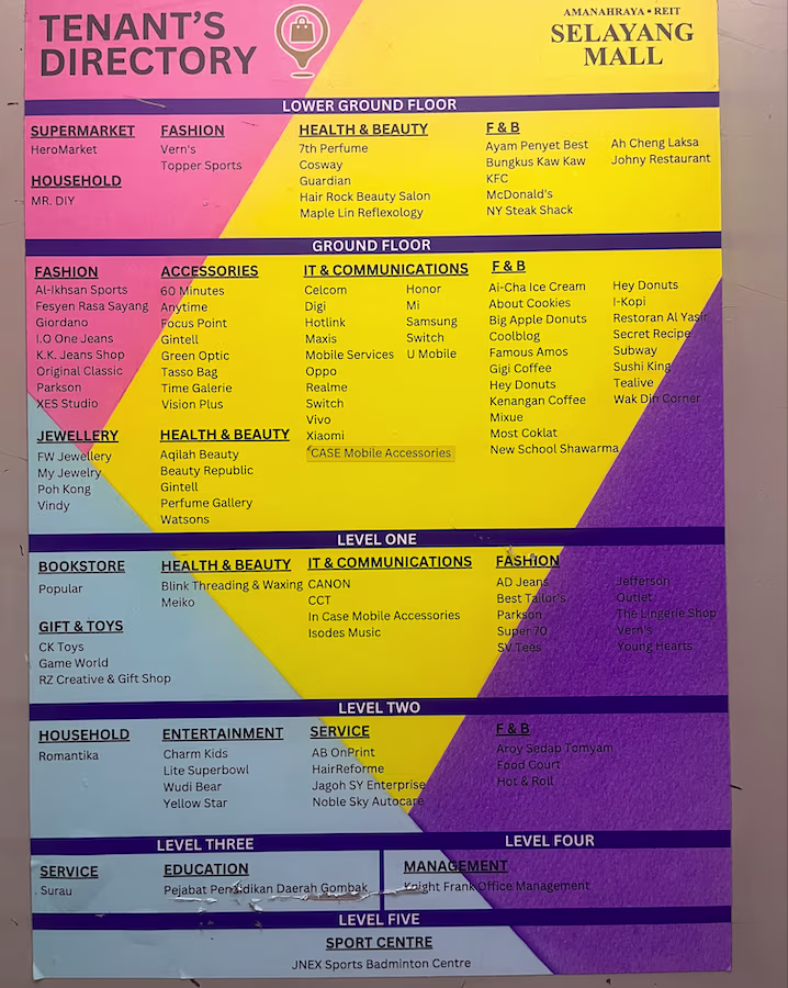 Selayang Mall’s Shopping Directory