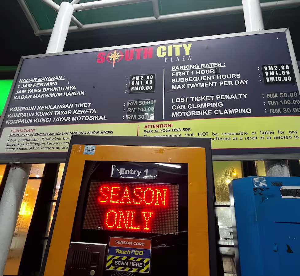 South City Plaza’s Parking Rate Notice Share Copy URLWhatsAppFacebookTwitterLinkedinEmail More Info Share Copy URLWhatsAppFacebookTwitterLinkedinEmail Subscribe Notify of new follow-up comments new replies to my comments Label {} [+] Name* Email* Label {} [+] Name* Email* 0 Comments Oldest Newest Most Voted Inline Feedbacks View all comments Info Difference Between “Reserved” and “Non-Reserved” Monthly Pass Parking in Malaysia How much TnG balance is required for parking in Malaysia Can you use MyKad’s TnG for parking payments? Can You Use Your Bankcard To Exit Parking If Your T&G Card Has Insufficient Balance?
