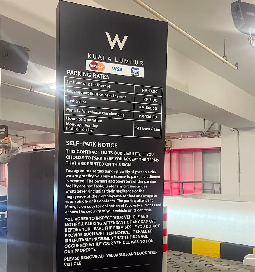 W Kuala Lumpur’s Parking Rate Board Share Copy URLWhatsAppFacebookTwitterLinkedinEmail Last Updated on October 2, 2025 by Parking Malaysia © parkinginmalaysia.com Back Share Copy URLWhatsAppFacebookTwitterLinkedinEmail Subscribe Notify of new follow-up comments new replies to my comments Label {} [+] Name* Email* Label {} [+] Name* Email* 0 Comments Oldest Newest Most Voted Inline Feedbacks View all comments Info Difference Between “Reserved” and “Non-Reserved” Monthly Pass Parking in Malaysia How much TnG balance is required for parking in Malaysia Can you use MyKad’s TnG for parking payments? Can You Use Your Bankcard To Exit Parking If Your T&G Card Has Insufficient Balance?